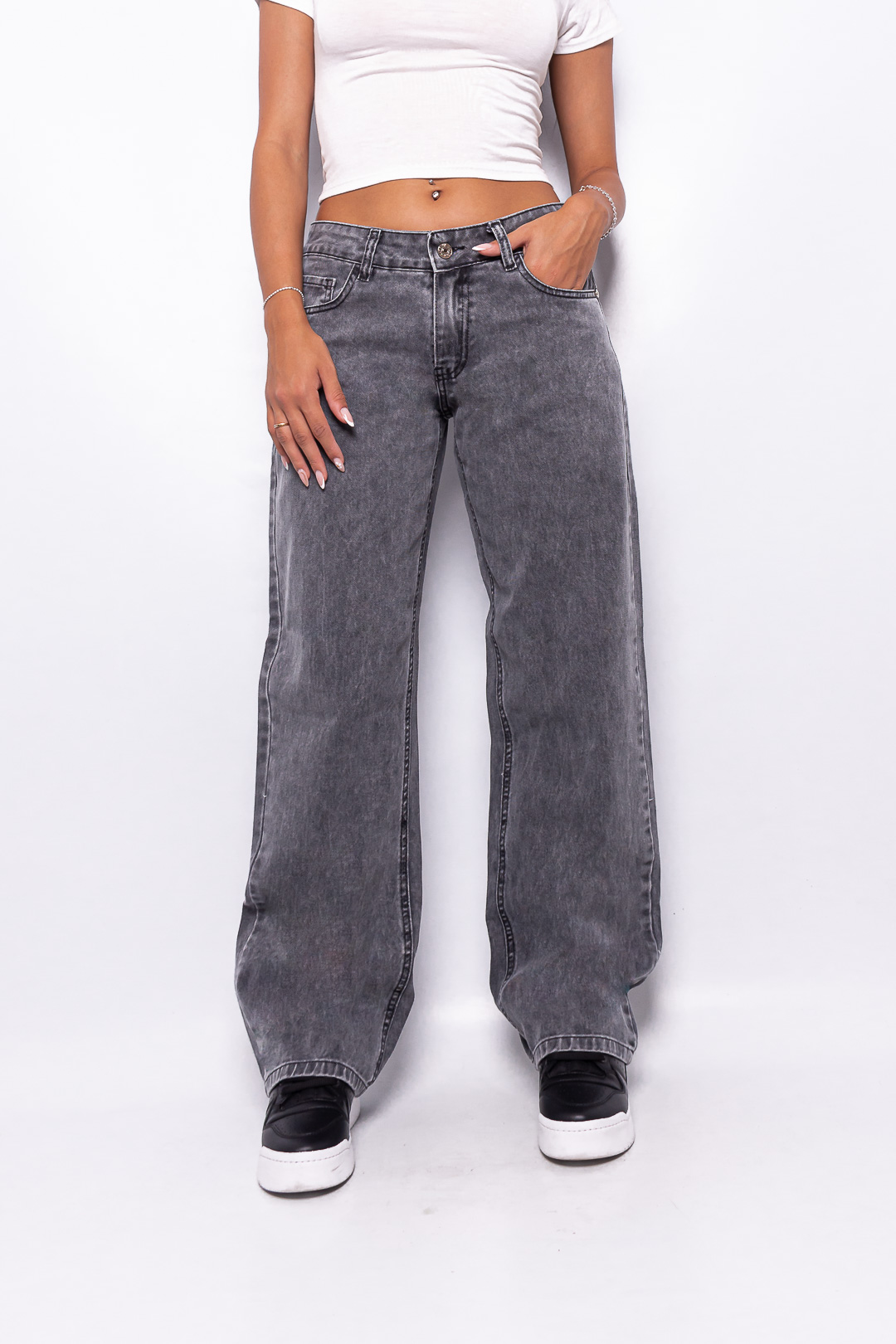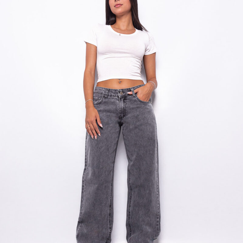 Baggy Rígido Tiro Bajo Celeste Nevado con Hebillas y Ruedo Normal