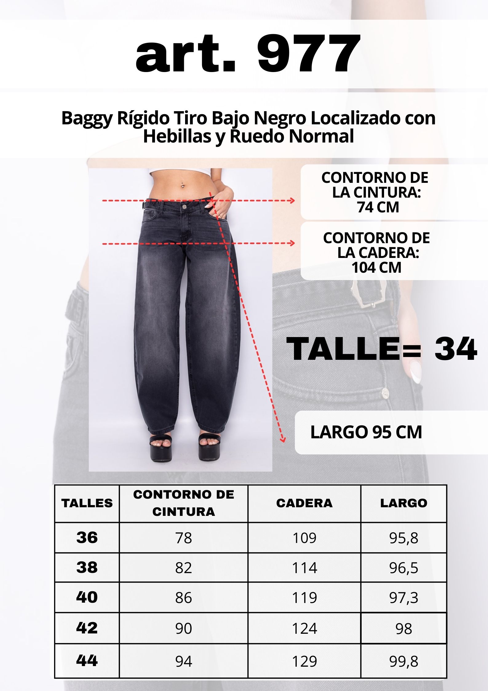 Baggy Rígido Tiro Bajo Negro Localizado con Hebillas y Ruedo Normal
