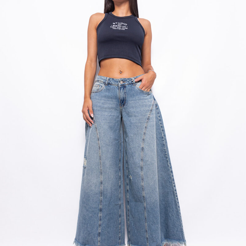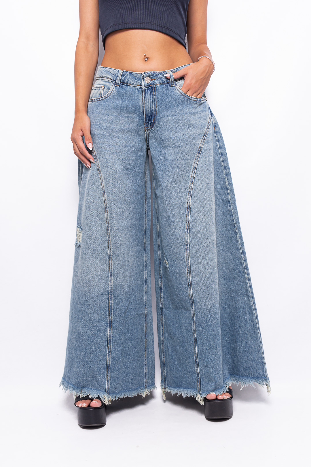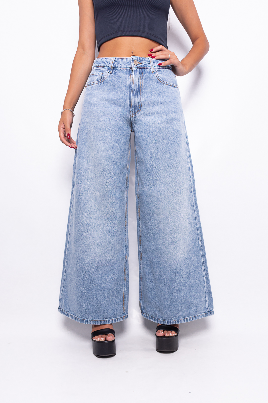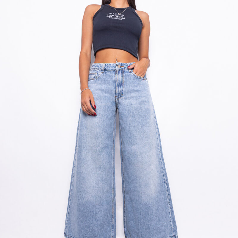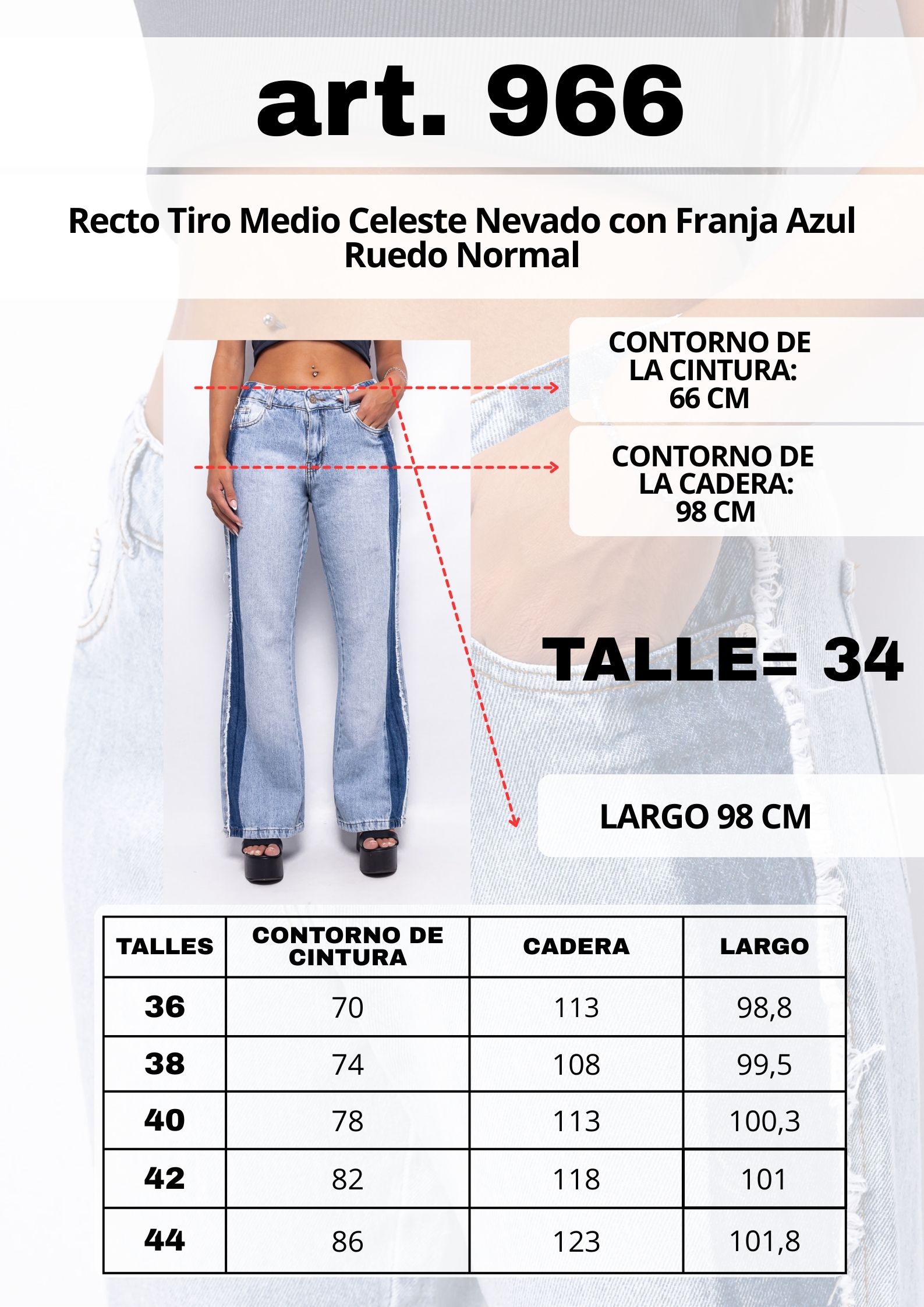 Recto Tiro Medio Celeste Nevado con Franja Azul Ruedo Normal