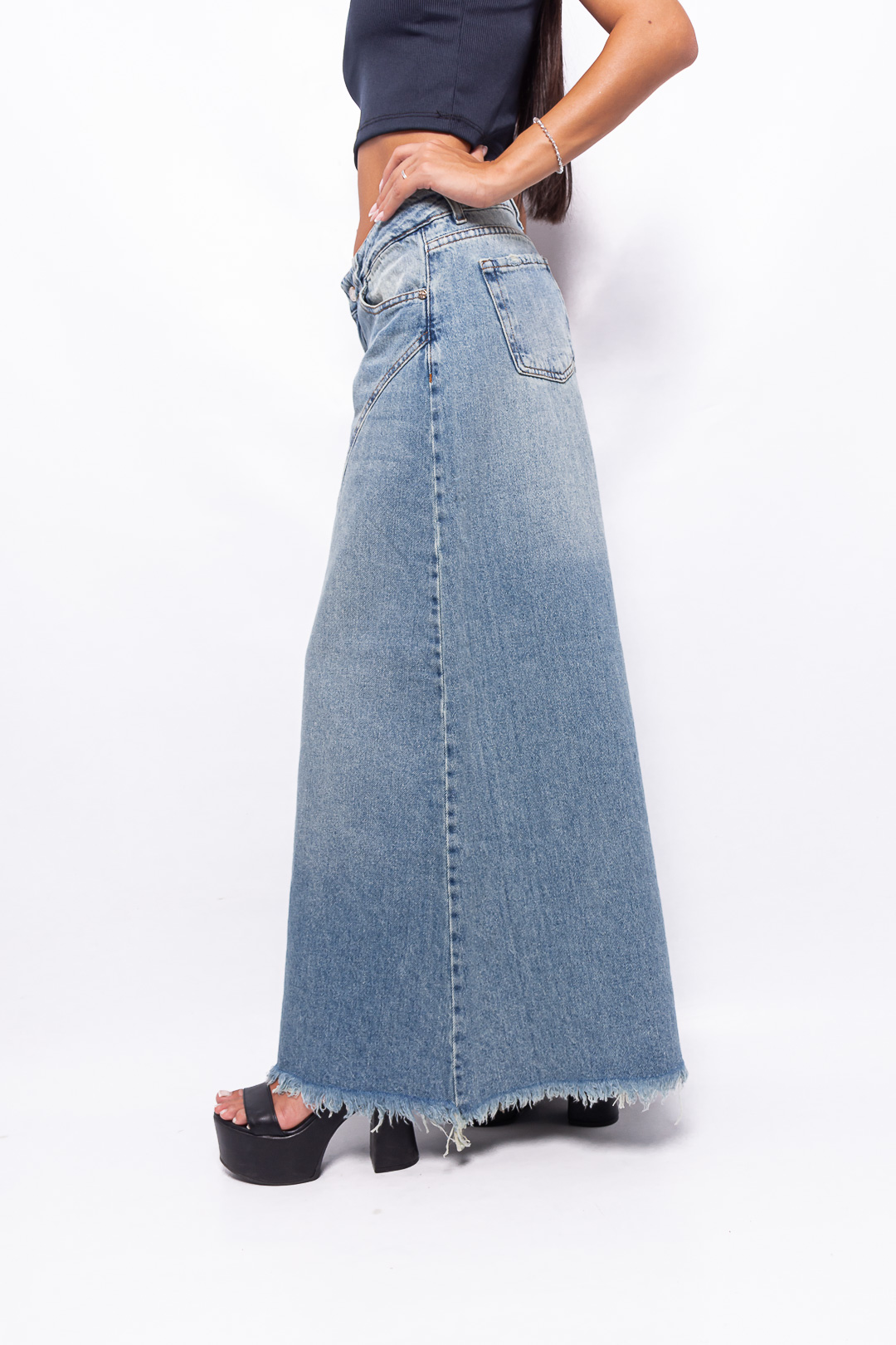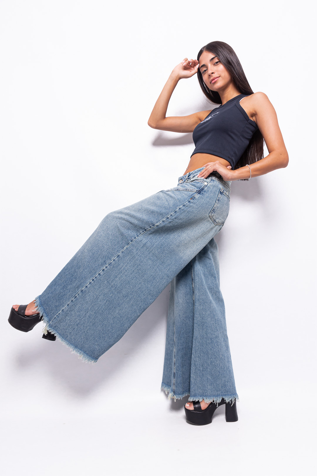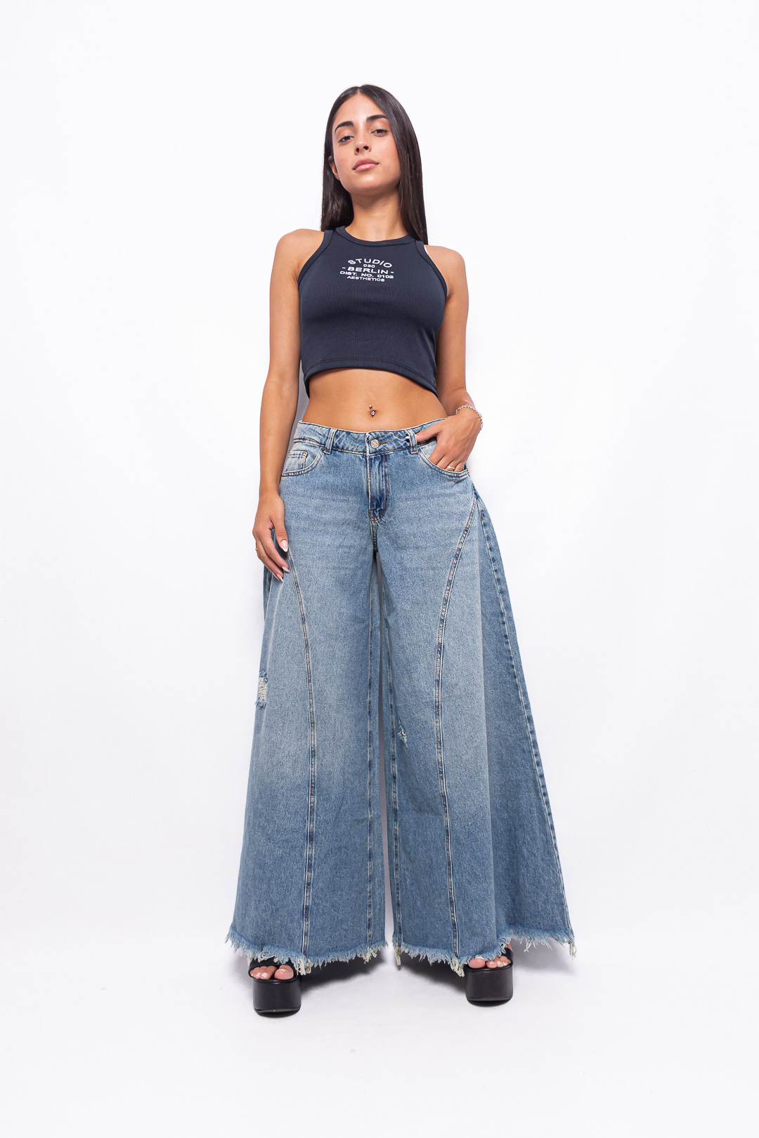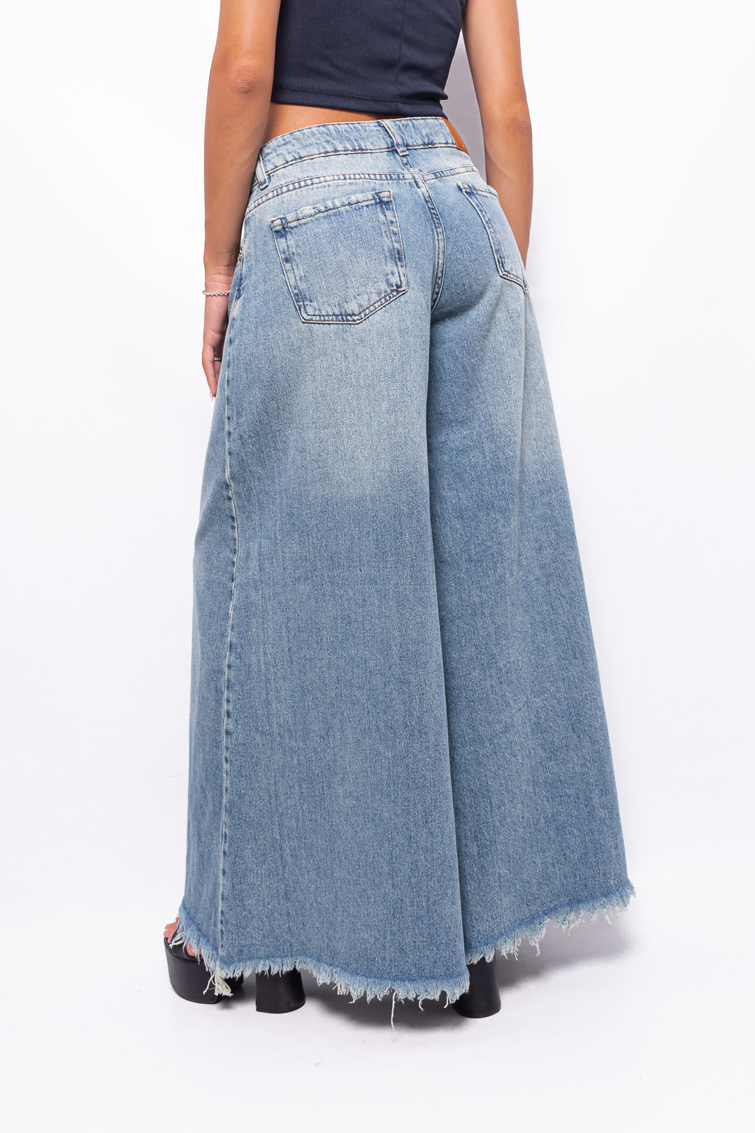 Super Wide Leg Tiro Bajo Arena con Recorte y Roturas Ruedo Desflecado