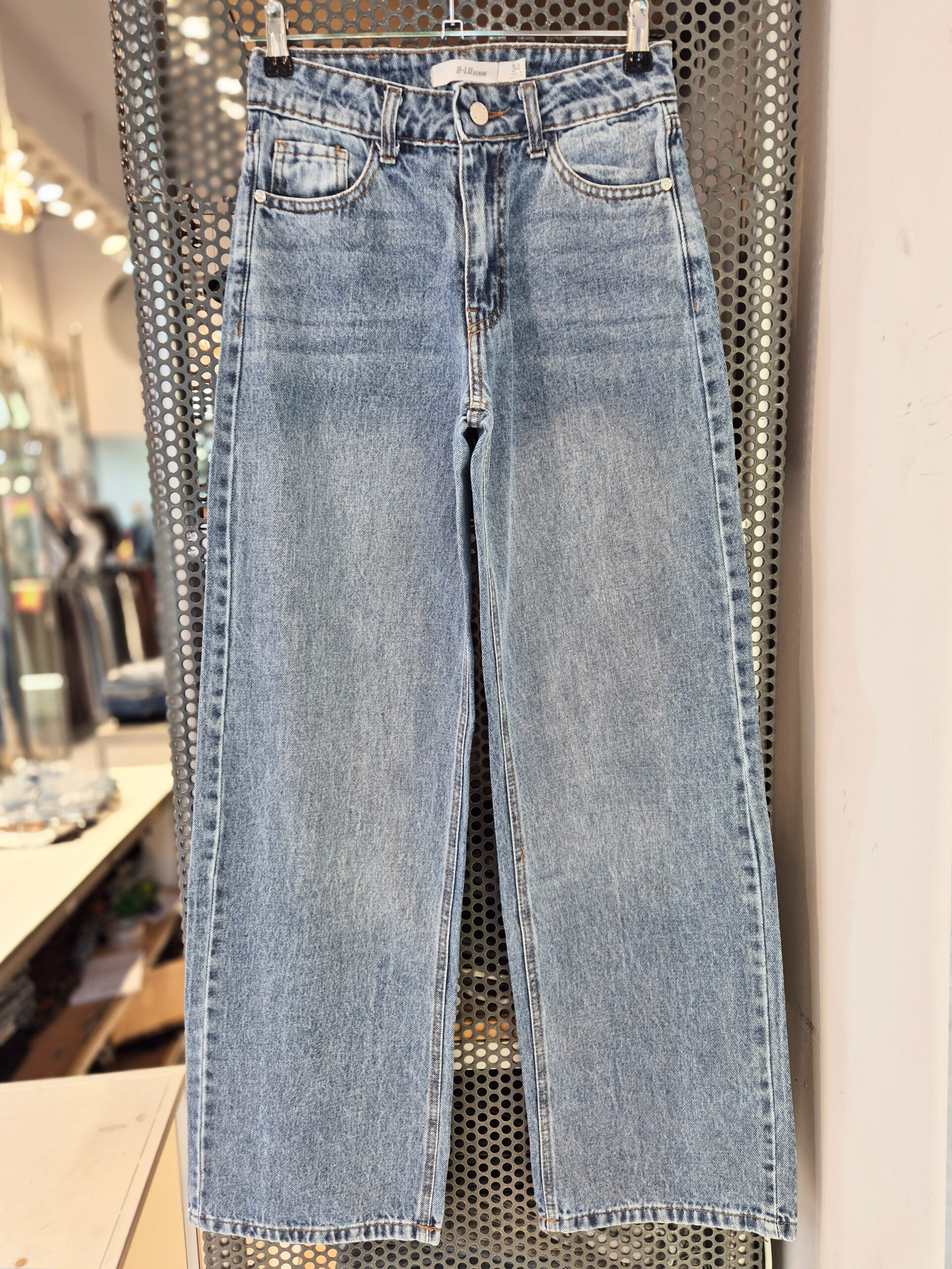 Wide Leg Rígido Tiro Medio Azul Nevado Localizado Ruedo Normal