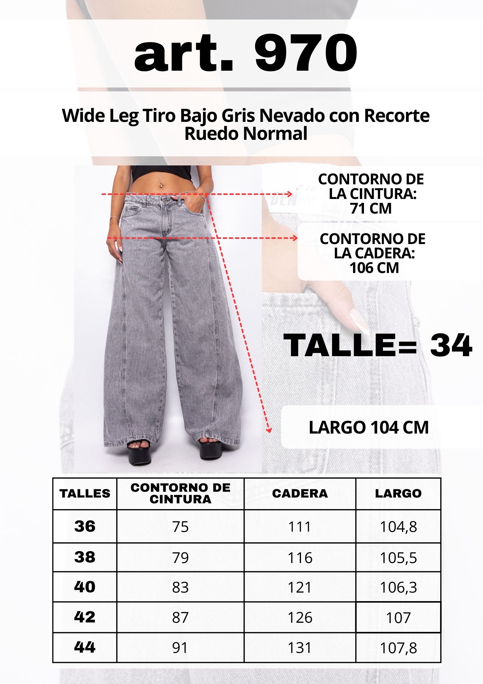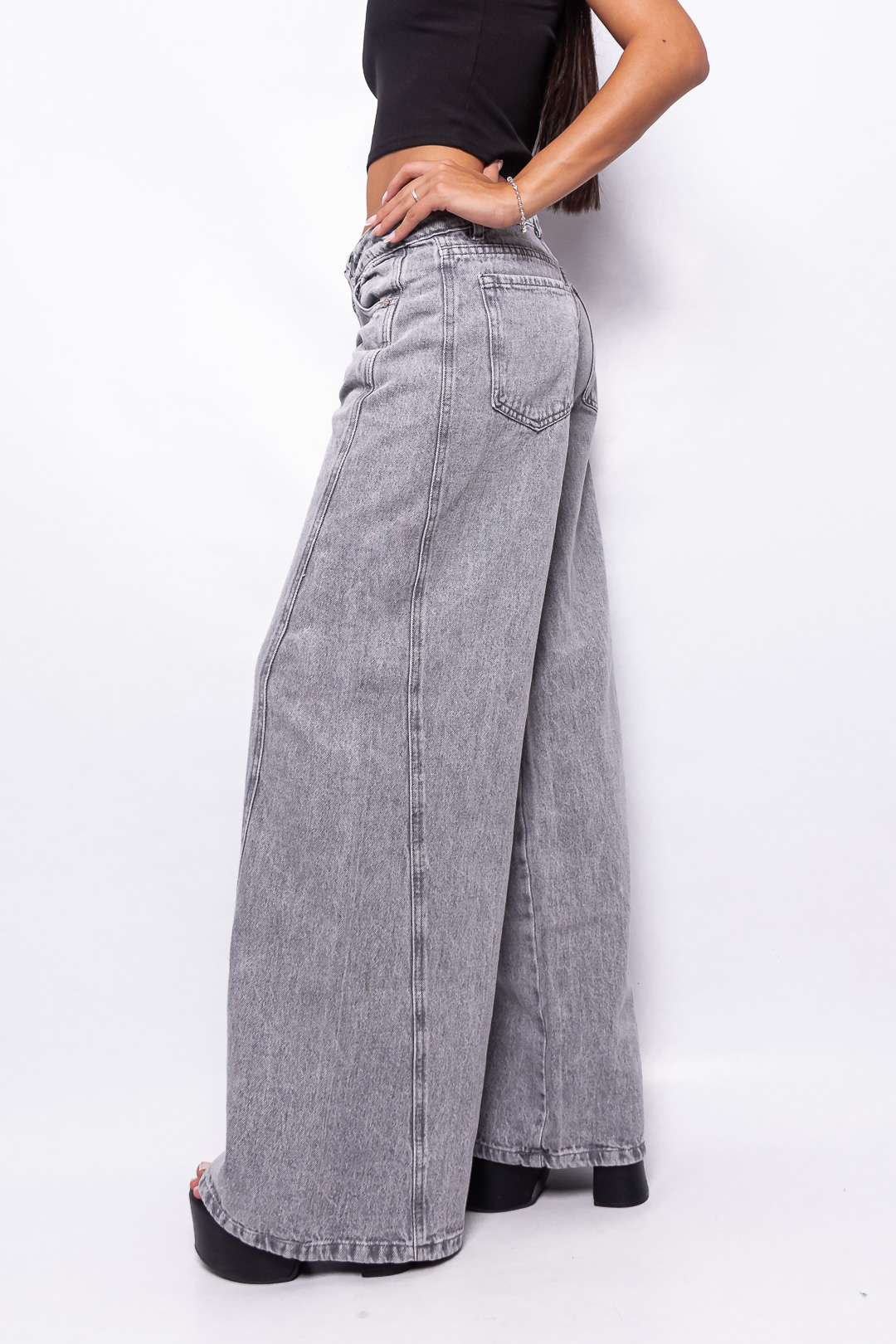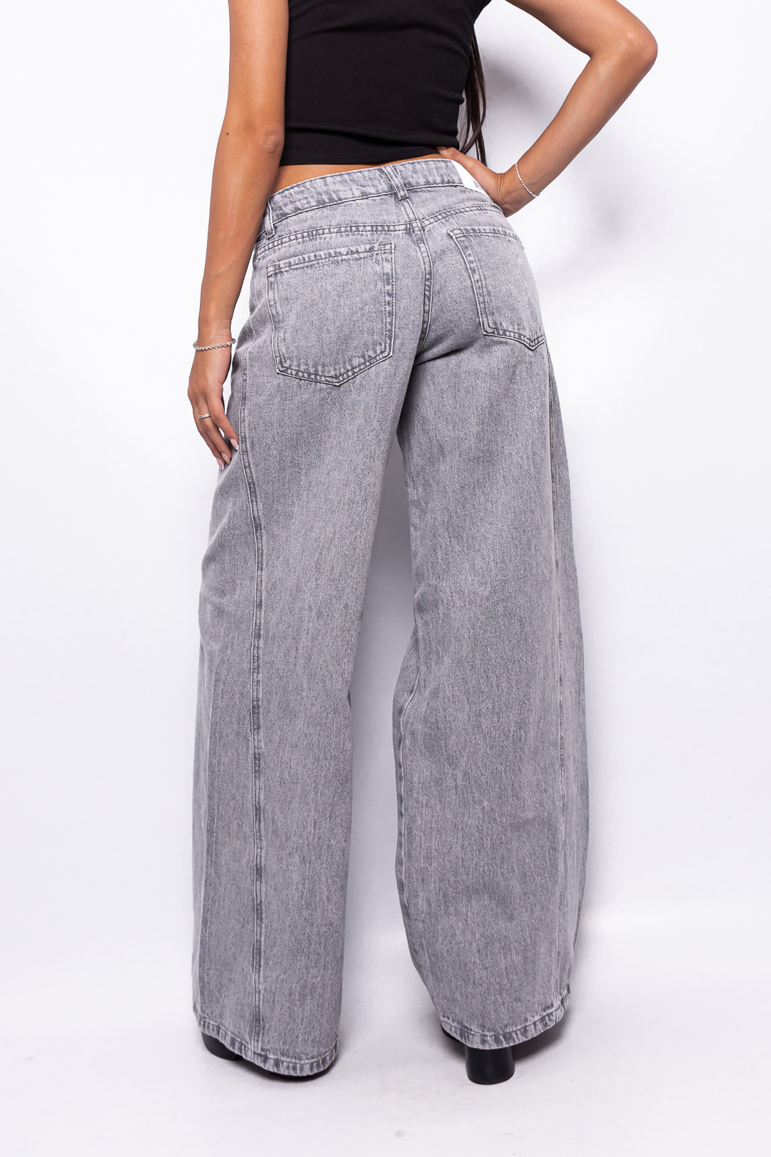 Wide Leg Tiro Bajo Gris Nevado con Recorte Ruedo Normal